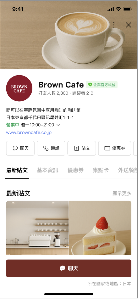 這是顧客點進官方帳號時最先看到的資訊。
